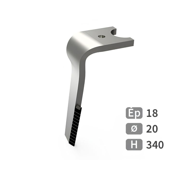Dent carbure, 12 pastilles triangulaire 13mm, herse rotative, KUHN, 340x110x18mm, Ø20mm, fixation rapide, K2507080 - K2510380, gauche, pièce interchangeable