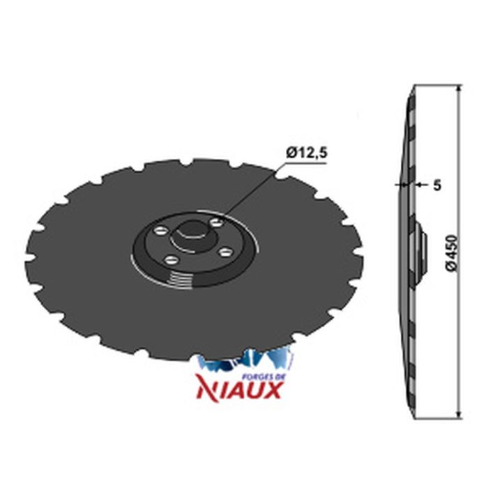 Disque crénelé 450x5 mm, 4 trous, 466947, compatible pour déchaumeur VADERSTAD Carrier, niaux 200