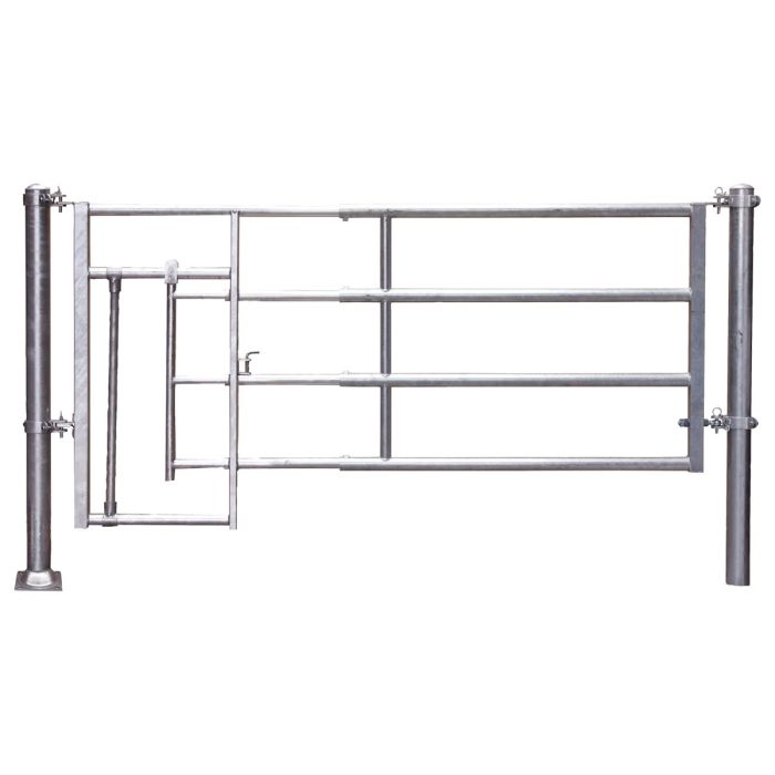 Le panneau-veaux permet de réaliser facilement une zone de retrait pour les veaux. Il en résulte une aire de repos et d'alimentation non perturbée où les veaux peuvent se retirer à tout moment de manière autonome. Le passage peut être entièrement fermé ou ouvert jusqu'à 41 cm maximum.