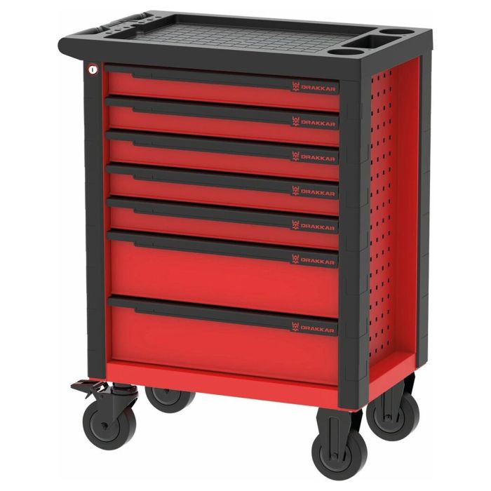 Servante d'atelier 7 tiroirs composée de 176 outils, modules finition carbone, DRAKKAR